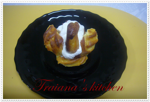 Тази рецепта гледах няколко пъти по "Фиеста ТВ", докато се реша да я направя. Лебедите станаха вкусни, макар и не точно такива, каквито ги направи Жак Пепен. А тъй като не обичам млечен крем, просто го замених със сметана.